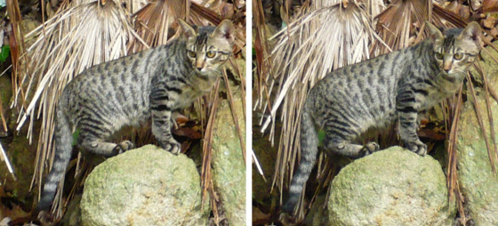 野生の山猫っぽいノラ猫 交差法3dステレオ写真