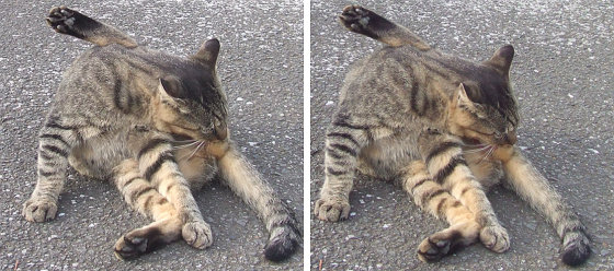 丸まる猫 交差法3Dステレオ立体写真