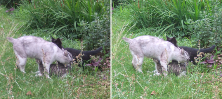 母猫が子育てをしているナントモ微笑ましい姿を、