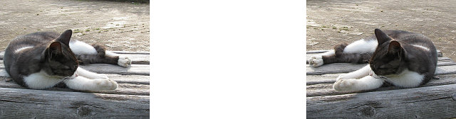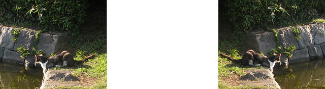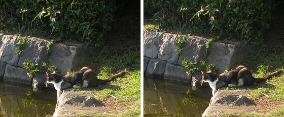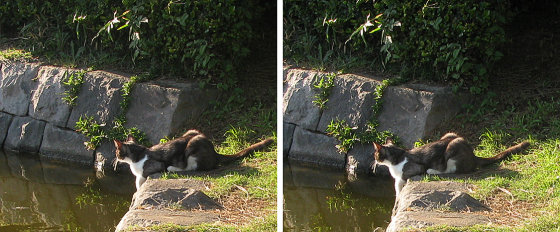 魚を探す猫 ミラー法3D立体ステレオ写真