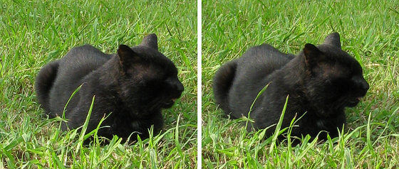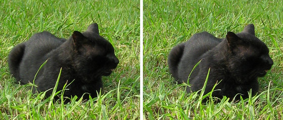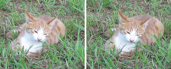 芝生を食べる猫 交差法ステレオ立体3D写真